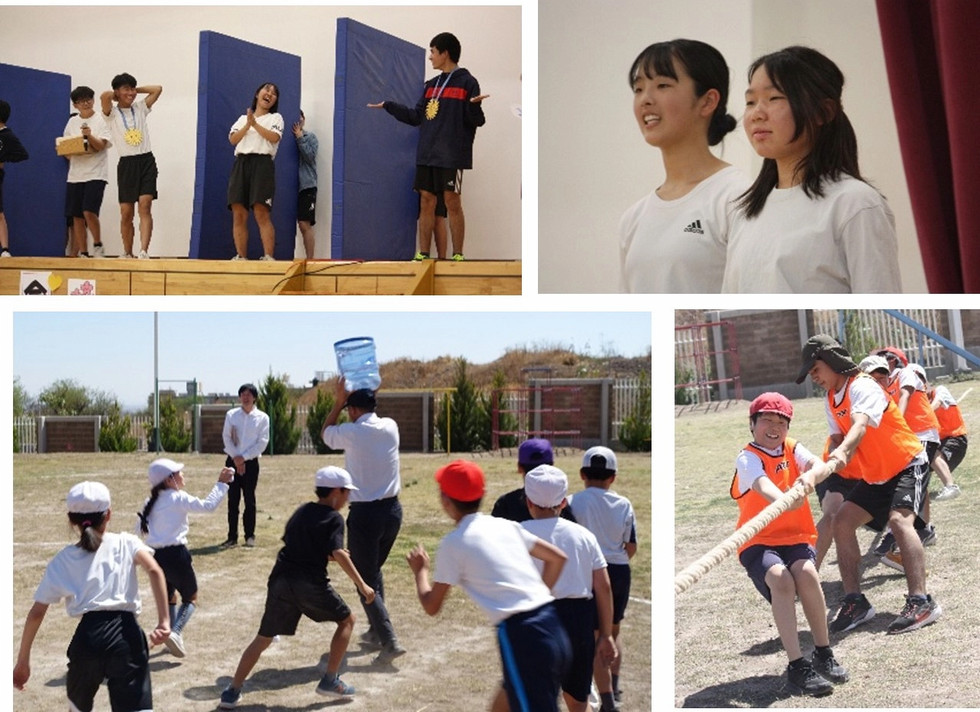最初は各校のダンスなどの発表があり、両国の食の交流(本校はカレーライスを準備)、その後グループにわかれドッジボールや福笑いなどの活動を楽しみました。