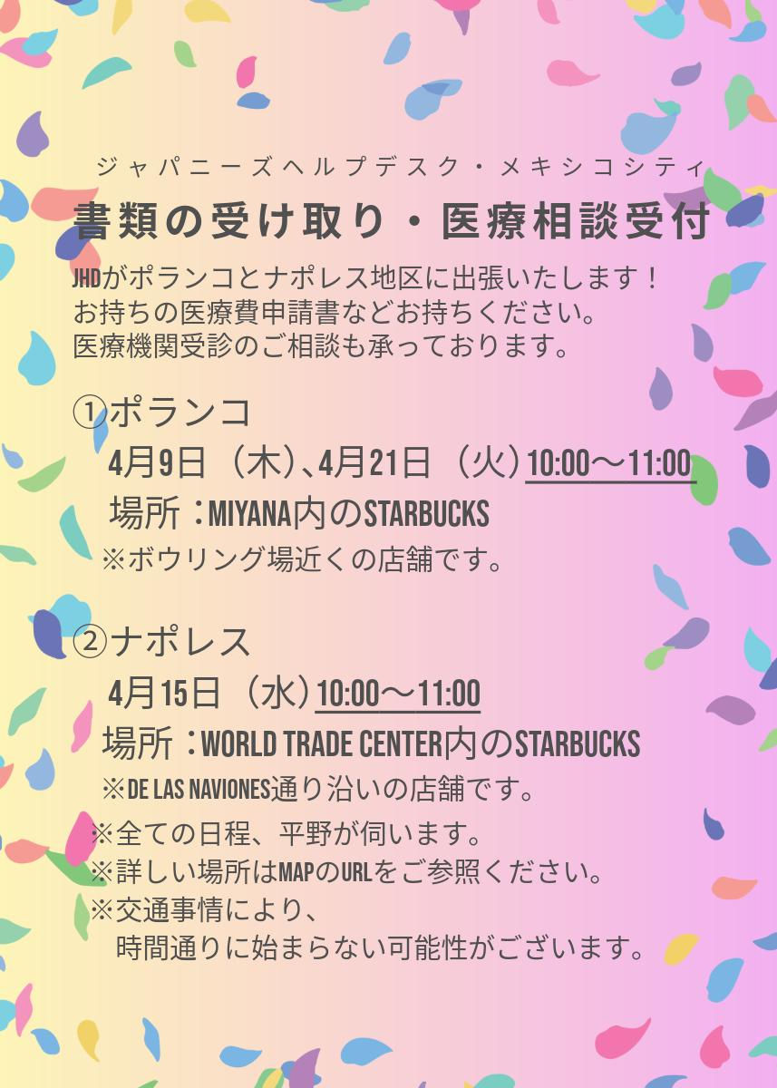 ジャパニーズヘルプデスクより、医療相談受付と書類回収のお知らせ(メキシコシティ)