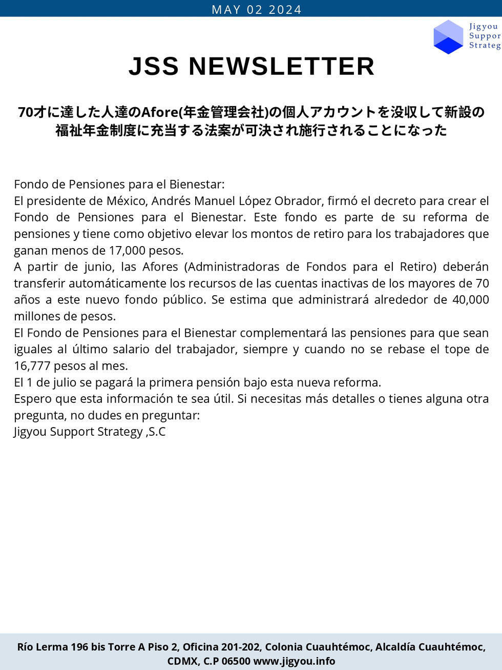 JIGYOU SUPPORT STRATEGY様より、NEWSLETTERが届きました。